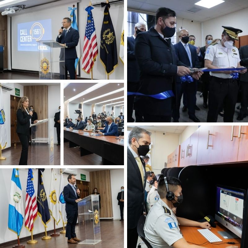 El lanzamiento del Call Center 1561 contó con la participación del Señor Vicepresidente de Guatemala, Guillermo Castillo Reyes; el señor Antonio Malouf, Ministro de Economía; la licenciada Sandy Recinos, Secretaria contra la Violencia Sexual, Explotación y Trata de Personas; el congresista Robert Pittenger, Presidente del Foro Parlamentario de Seguridad e Inteligencia de Estados Unidos; funcionarios del gobierno, miembros de la Sección de Asuntos Antinarcóticos y Aplicación de la Ley INL, miembros de organismos internacionales y de la sociedad civil.